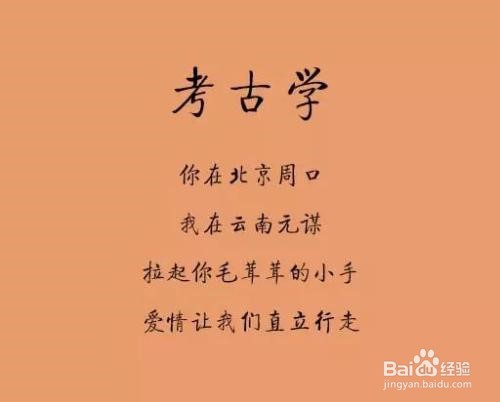 4、考古学:1.北京周口,云南元谋都是发现人类祖先考古地点。人类进化过程一个锿洞斜嗤演变过程就是学会的直立行走。2.我原作昏庸的幽王,倾尽天下,只为搏你一笑3.历史学就让我和你生命中每一分每一秒的历史重叠。小编有话说:历史很有趣,表白更是为你加上助力。