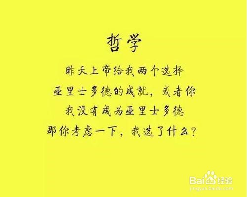 2、哲学:1.最珍贵的是今天,最容易失去的也是今天。2.亚里士多德是哲学先驱,在成为哲学大师和你,我选择了你。用提问的语气表达了我愿意为你放弃一切。小编有话说:因为有你,才够长久。